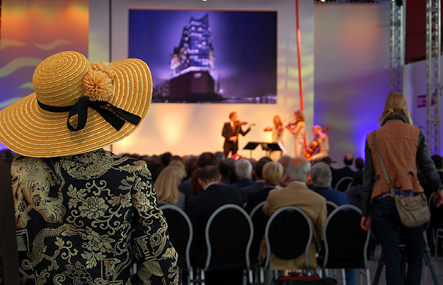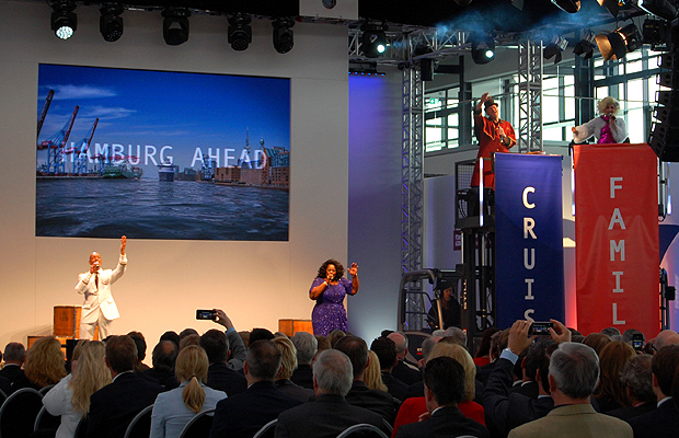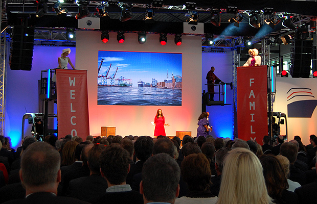 - Zur Eröffnung gab’s eine musikalische Bühnenshow und Kreuzfahrtimpressionen © Melanie Kiel