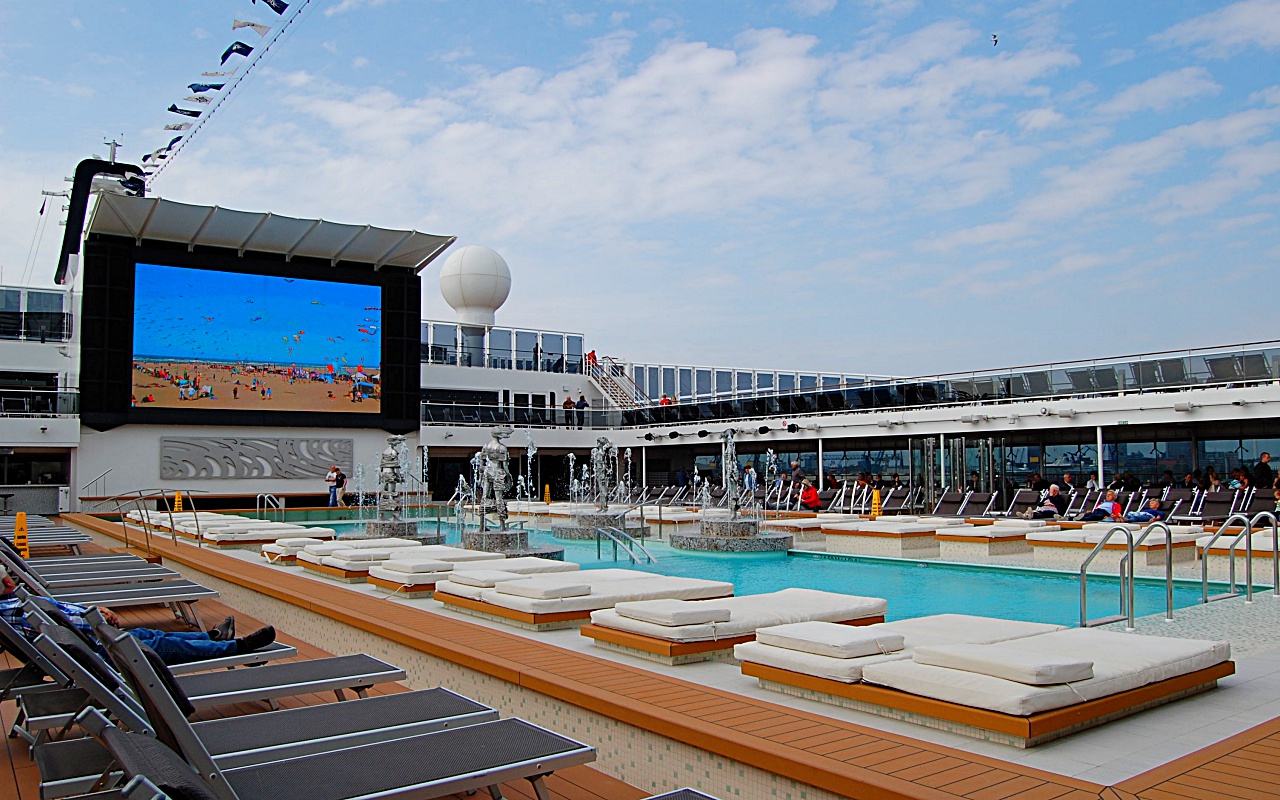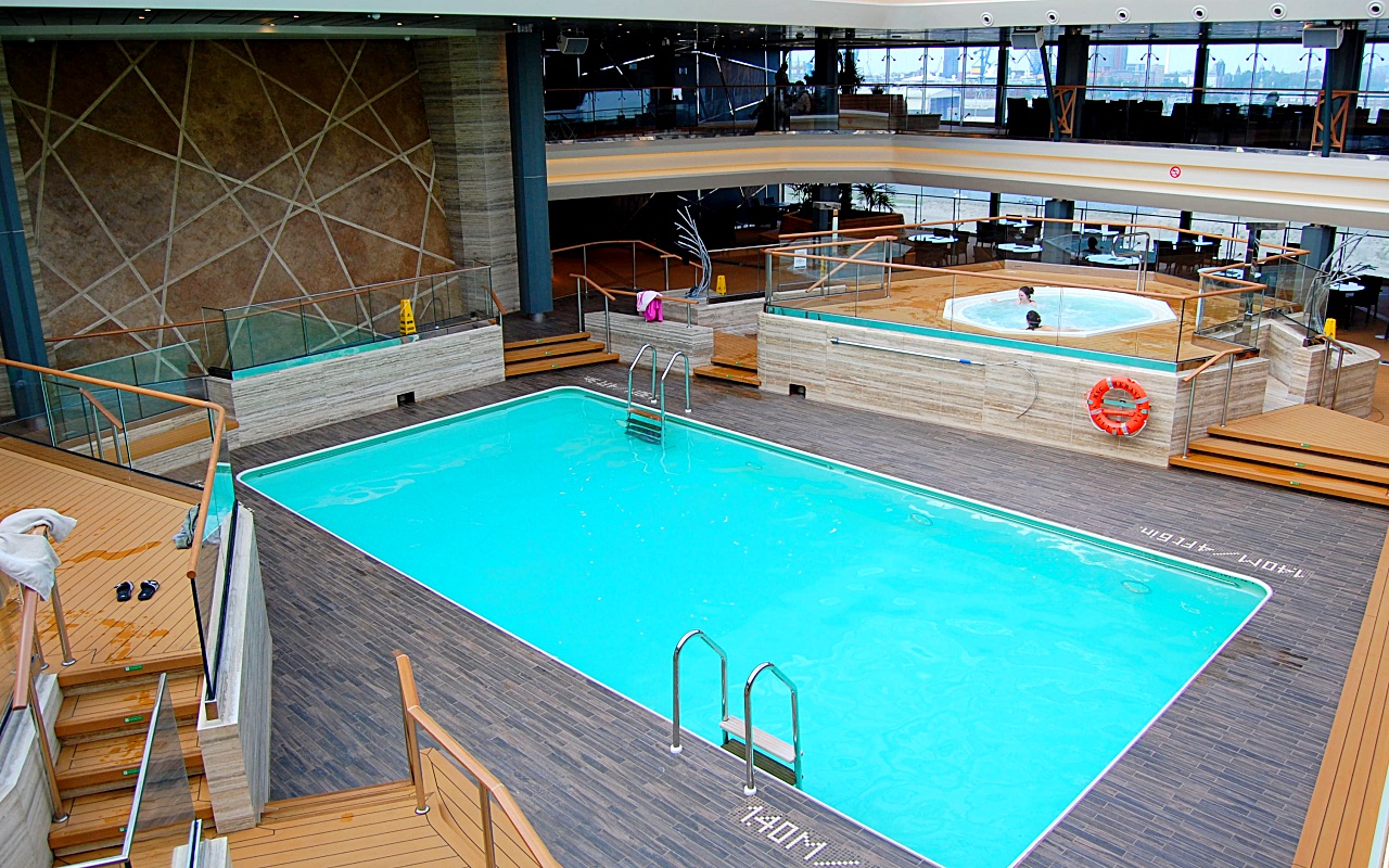 - Gäste der MSC Meraviglia können an diversen Pools entspannen, darunter am großen Hauptpool © Melanie Kiel