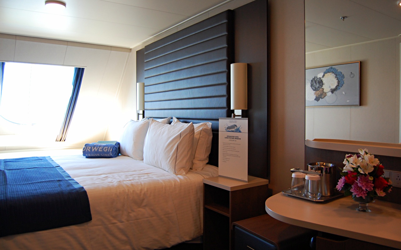 - Auch die Außenkabinen sind eine gute Option – gerade für das Zielgebiet Alaska. Die Fenster sind sehr groß, die Kabinen geräumig und hell und der Ausblick z.B. über den Bug einfach traumhaft © Melanie Kiel