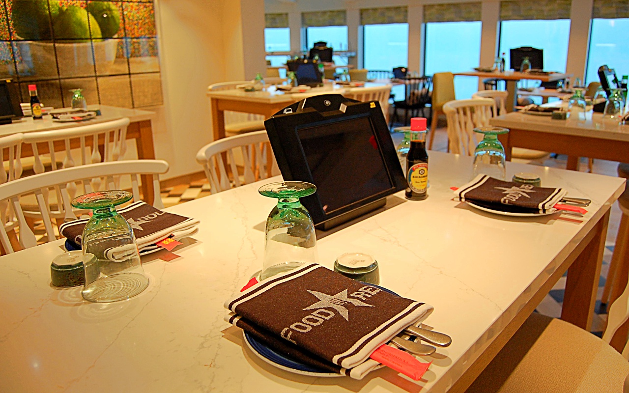 - Gutes Essen mit Gerichten aus aller Welt, dazu Blick aufs Meer erwartet Gäste im Food Republic auf Deck 8. Gerichte werden am Tablet-PC ausgewählt und bestellt © Melanie Kiel