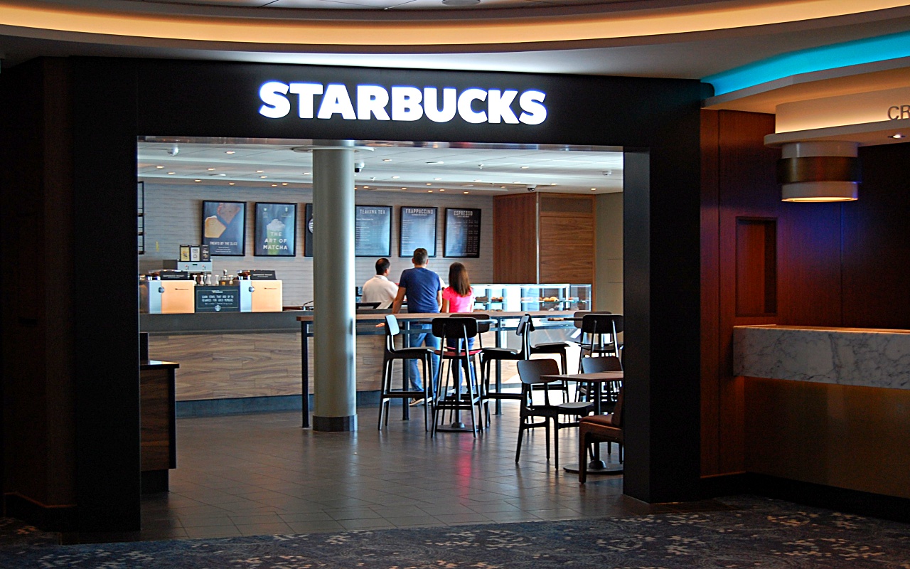 - Neuerung auf der Norwegian Bliss ist das Starbucks Café. Vom Chai Latte bis zum Caramel Macchiato ist hier alles an Starbucksspezialitäten zu haben © Melanie Kiel