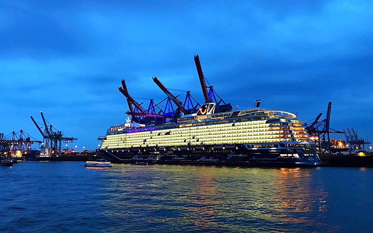 Das war ein schönes Spektakel am Freitagabend auf der Elbe: TUI Cruises hat am HHLA Container Terminal Burchardkai ihren Flottenneuling, die neue Mein Schiff 1, getauft.
