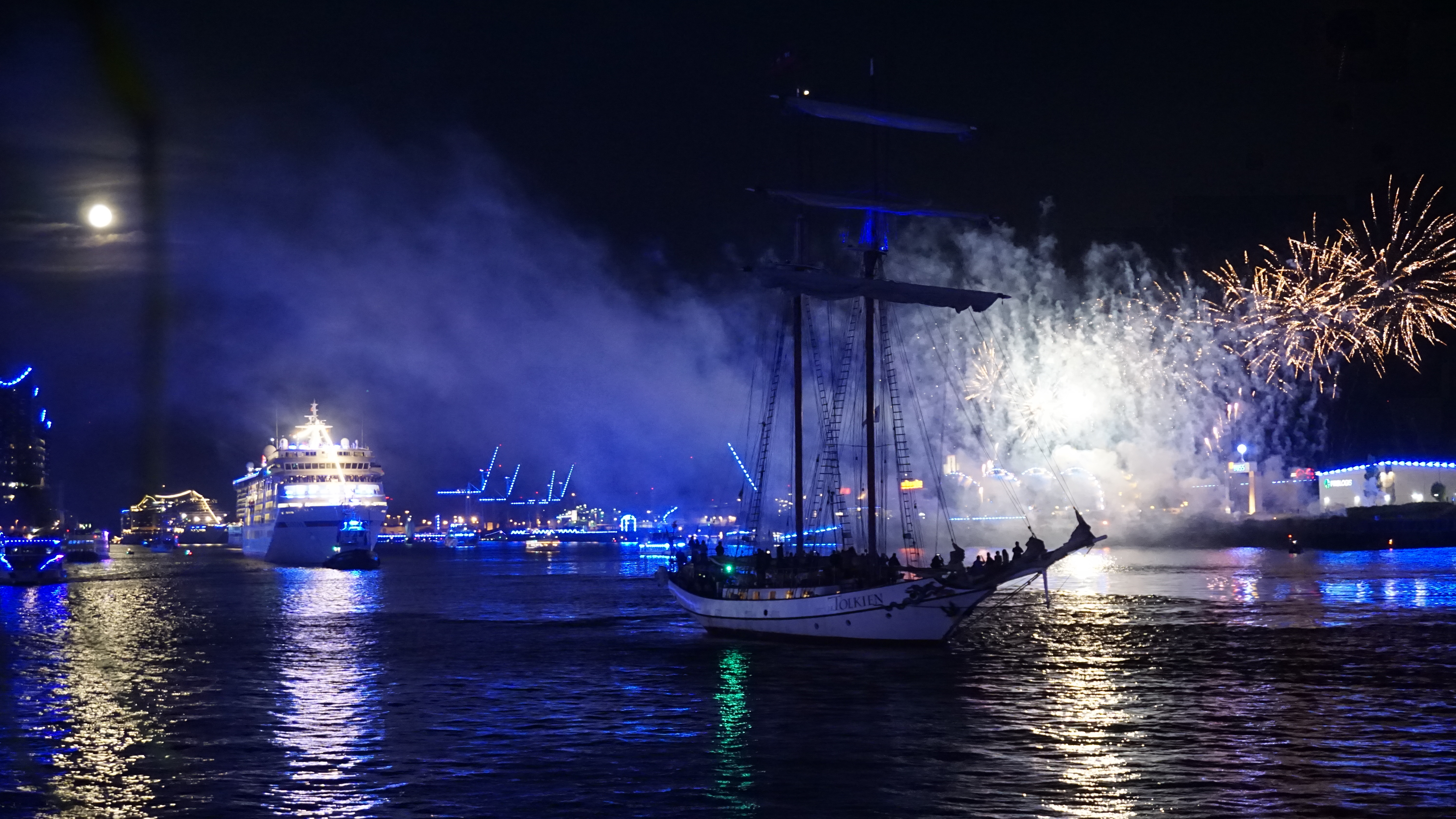 Herrliches Wetter, entspannte Stimmung und mystische Atmosphäre am Abend im Hafen: Die Große Hamburg Cruise Days Parade war das spektakuläre Highlight der Cruise Days 2019.