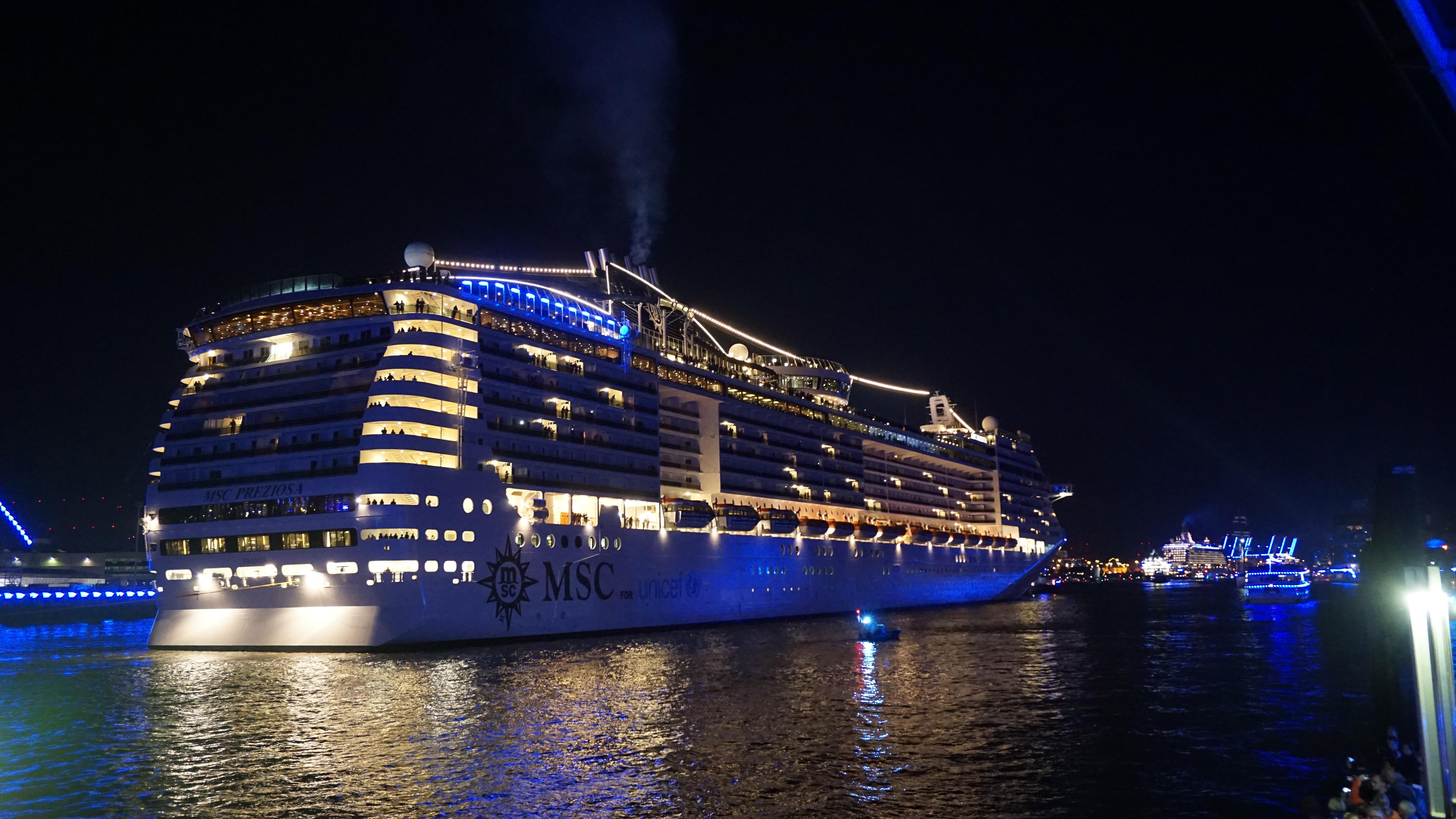 Vier der fünf Schiffe haben mit der Parade Hamburg verlassen. Die MSC Preziosa blieb noch bis zum Sonntagabend in Hamburg. Daneben waren am Sonntag die AIDAvita (Ankunft um ca. 8 Uhr am Cruise Center Altona) sowie die Flusskreuzfahrtschiffe MS FREDERIC CHOPIN und MS SANS SOUCI am Sonntag im Hafen zu sehen.