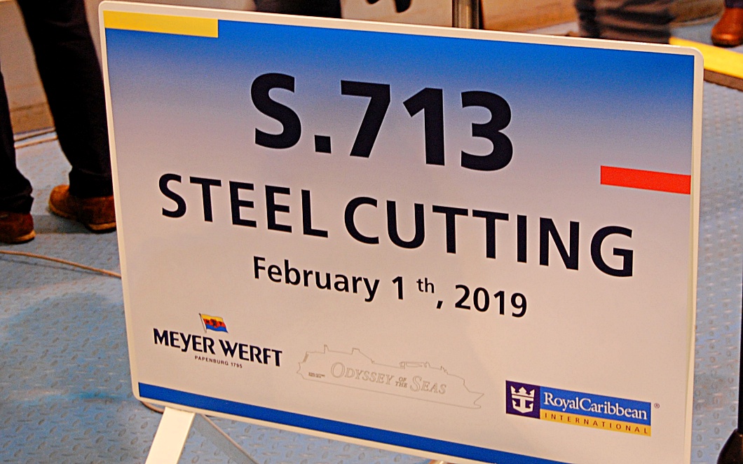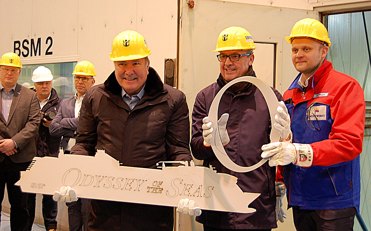 Nach Tradition markiert der feierliche Stahlschnitt des ersten Baustückes den Beginn des neuen Kreuzfahrtschiffes. Die Odyssey of the Seas wird das zweite Schiff der Quantum-Ultra-Klasse sein.