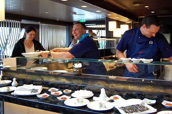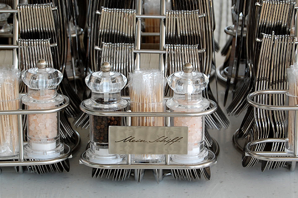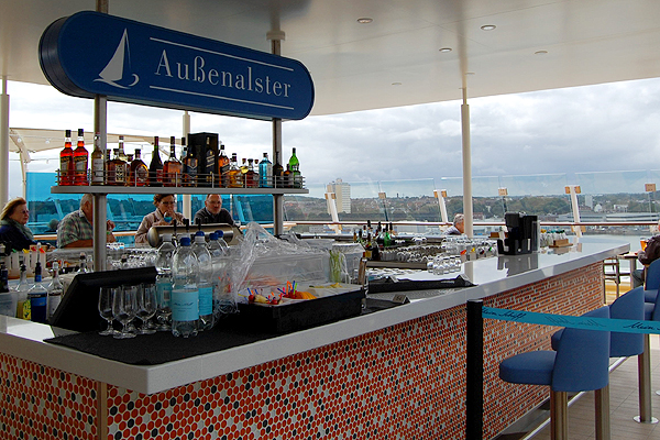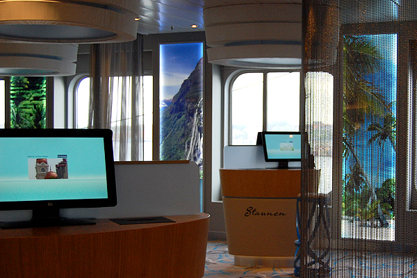 Lieblingsplätze gibt es viele. Da wäre zum einen der Ausguck auf Deck 15, der einen nahezu 360-Grad-Ausblick bietet und für TUI Cruises CEO Wybcke Meier zu den schönsten Plätzen an Bord zählt. War es auf der Nr. 4 noch ein gelber Pinguin, so ist es auf der Mein Schiff 5 eine blaue Fuchsstatue, die hier Ausschau hält. Oder das Restaurant Hanami – By Tim Raue – auch eine Innovation an Bord –  in dem man nicht nur hervorragend fernöstliche Küche, sondern auch herrliche Ausblicke durch große Panoramafenster am Heck genießt. Dort, wo sich auf der Mein Schiff 3 und Mein Schiff 4 ein Indoorpool befindet, erstreckt sich mit der neuen Lagune ein schick gestalteter, ruhiger Poolbereich, ein weiterer Wohlfühlort an Bord. Last but not least bietet der so genannte Blaue Balkon einen wunderbaren Platz über dem Meer. Schwindelfrei sollte man allerdings sein, denn der Blick reicht tief hinab und der Boden unter der Sitzbank ist aus Glas.