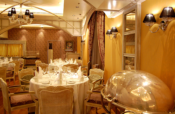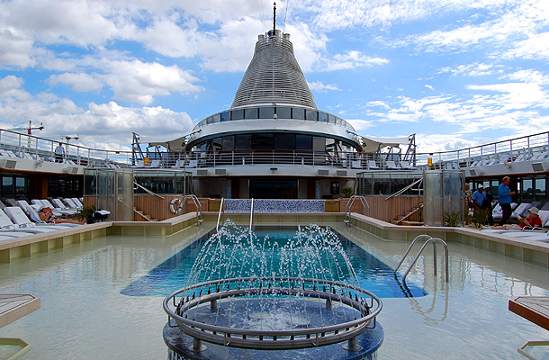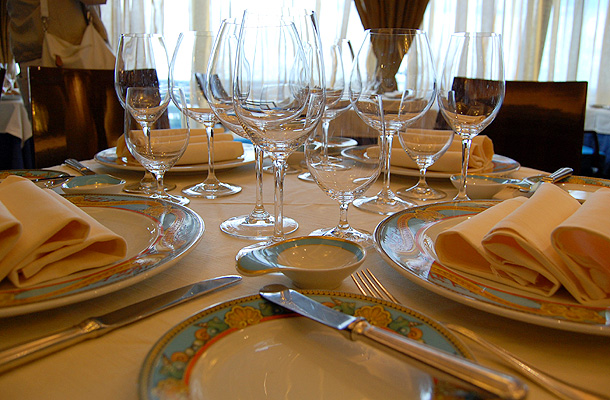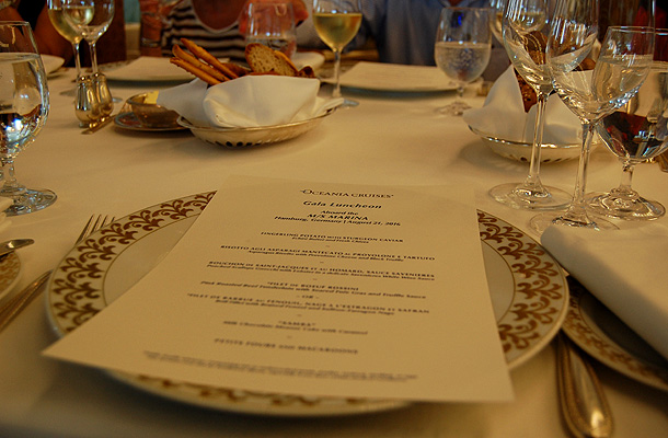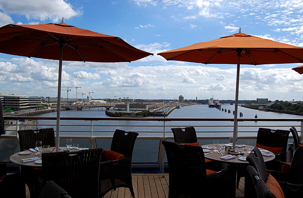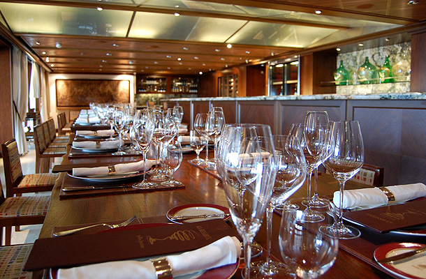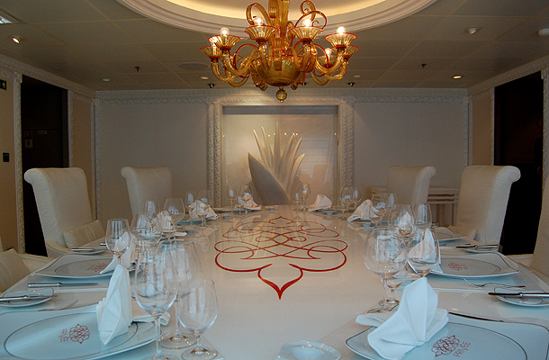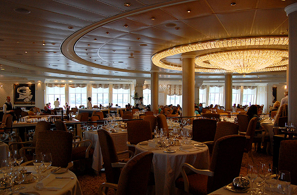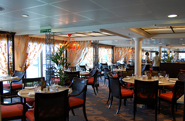 Die Restaurants bieten für ein mittelgroßes Schiff enorme Abwechslung – vom asiatischen Red Ginger über das italienische Toscana, in dem Gäste von Versace designtem Geschirr speisen, bis hin zum Jacques, dem ersten Restaurant des bekannten Kochs Jacques Pepin auf See. Hier genießt man feine Kreationen in der Atmosphäre eines eleganten französischen Landhauses.