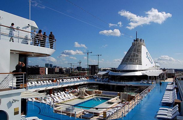 Klein, aber fein ist wohl der erste Eindruck, den die Passagiere beim Betreten der Marina gewinnen. Denn im Vergleich zu den neuen Mega-Bauten der Konkurrenz ist das Kreuzfahrtschiff von Oceania Cruises wahrlich kein Riese. Doch die auf zurückhaltenden Luxus spezialisierten Amerikaner beschreiben die Marina mit ihren 16 Decks und 239 Metern Länge lieber als „mittelgroß“.
