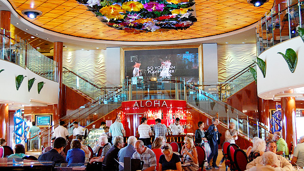 - Die Aloha Atrium Bar – das Café des Schiffs – befindet sich im Atrium auf Deck 7