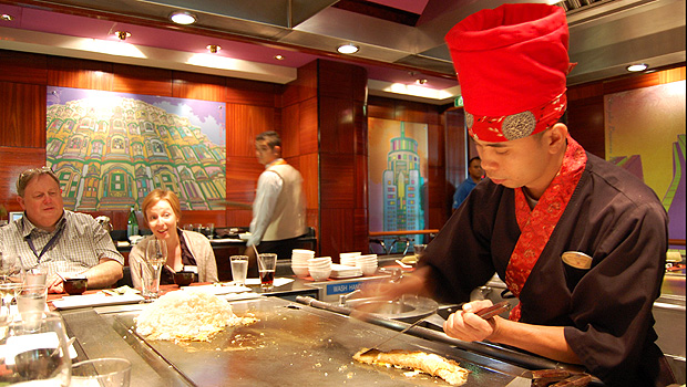 - Ein Erlebnis für Augen und Gaumen verspricht ein Besuch des Restaurants Teppanyaki. Flinke Hände lassen Messer wirbeln und Eier fliegen, bis alles köstlich duftet und noch besser schmeckt